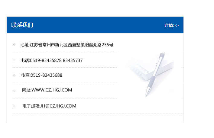 傳真:0519-83435688    郵編:213135    網址:WWW.czjhgj_com.yihails.com    電子郵箱:JH@czjhgj_com.yihails.com
